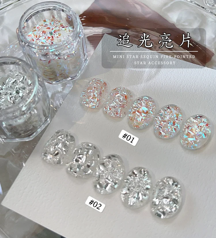 5g/Bottle Holographic Chunky Nail Glitter Light Chasing Iridescent Glitter Nail Art Sequins Sparkly Flash Gel Polish Paillettes