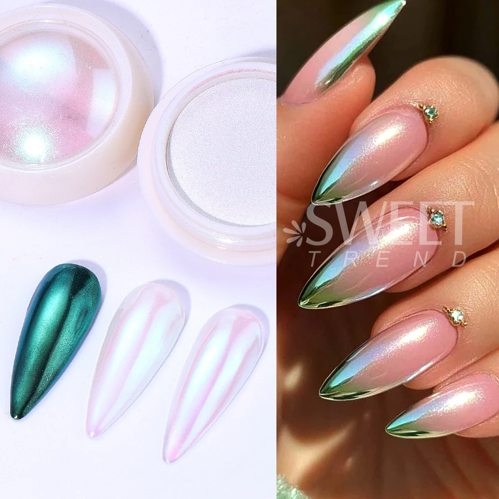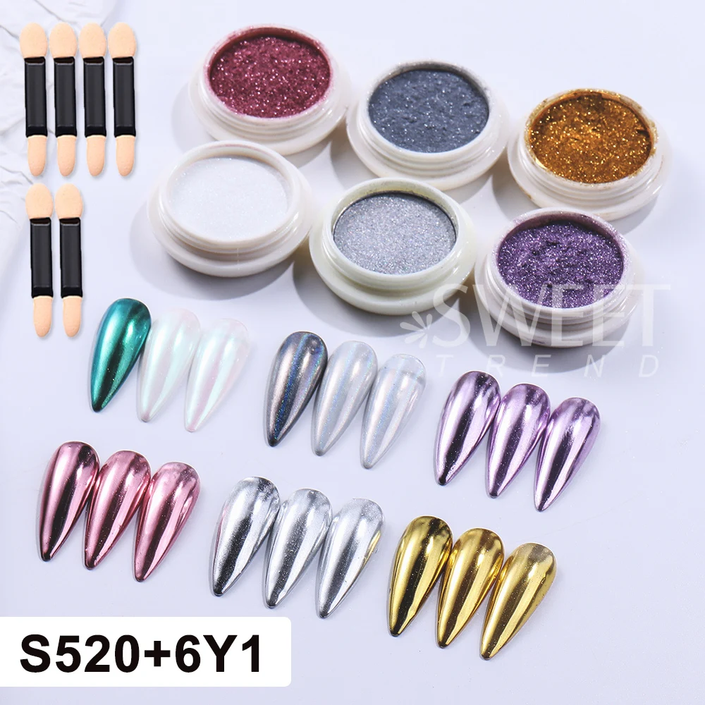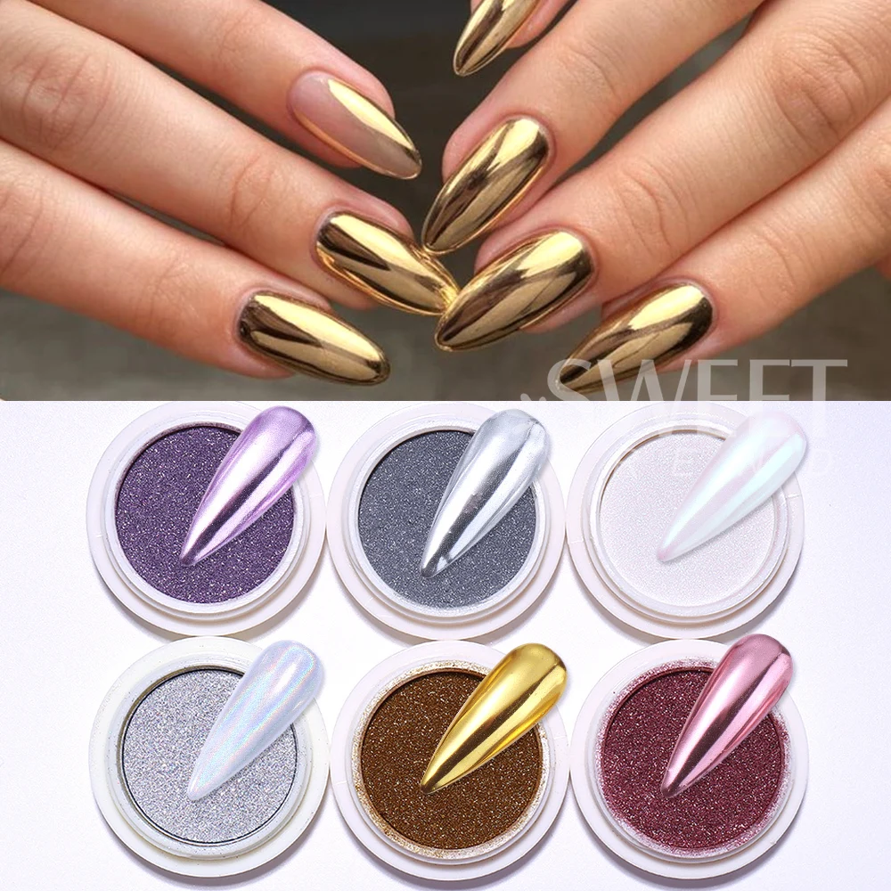 6pcs/set Mirror Silvery Chrome Nail Powder
